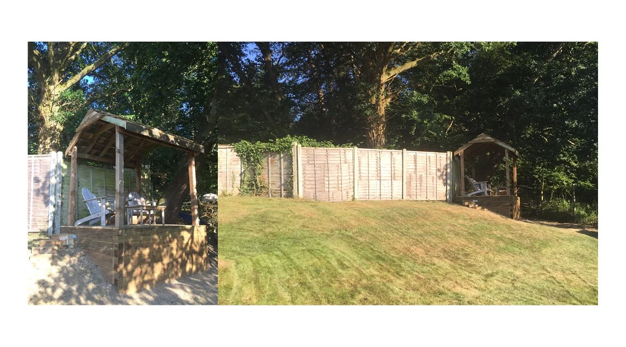 We levelled the uneven ground using railway sleepers and carefully disassembled the treehouse. Using the reclaimed wood, I built a safe, practical, and inviting space on otherwise unusable land.